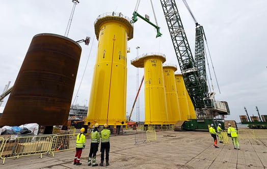 Vor der Offshore-Installation: Mock-up zur Erprobung des Transition Pieces bei CS Wind Offshore in Aalborg.